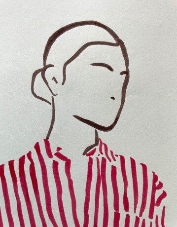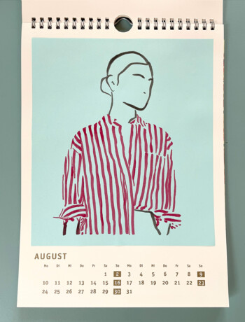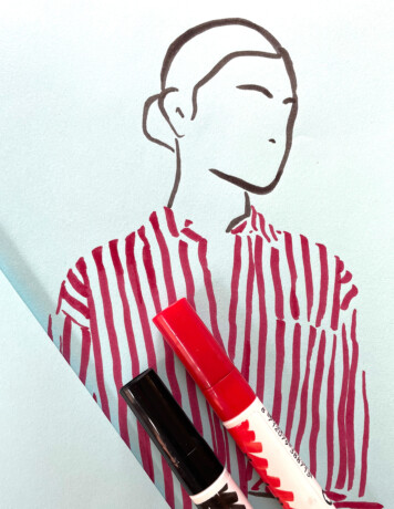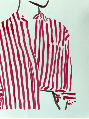zurückFrau rot gestreift weiter Freie KunstKollage mit buntem Passepartout, dazu Zeichnung mit Filzer.